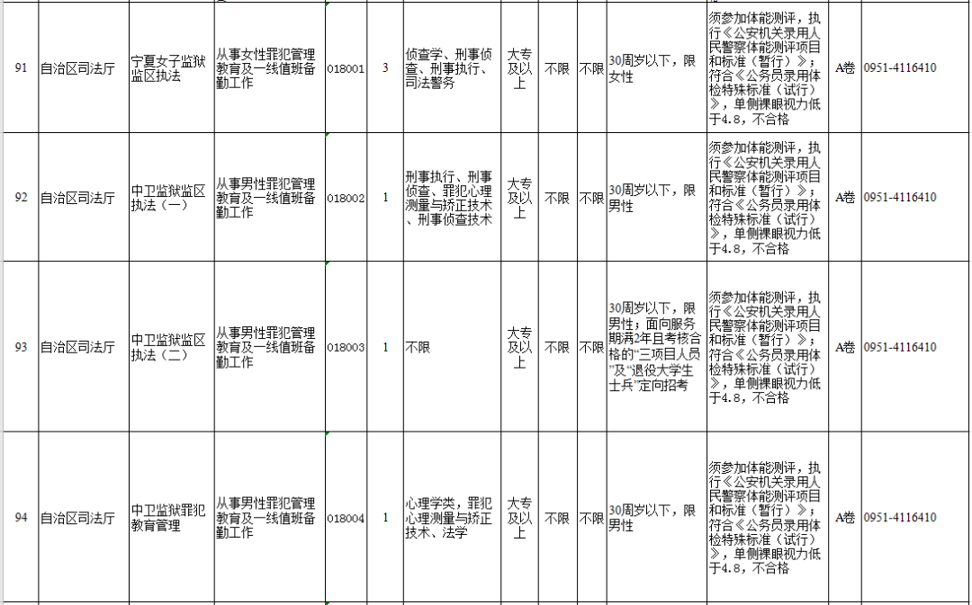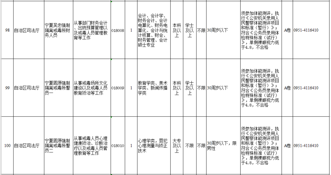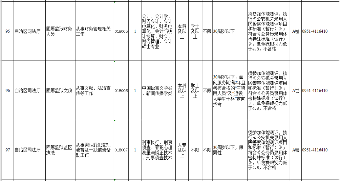 (点击以下图片放大查看宁夏司法厅岗位)